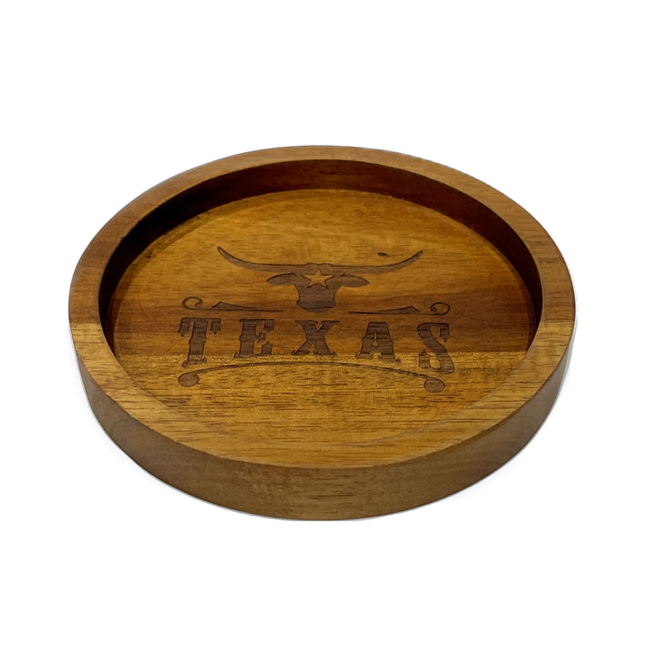 Acacia Wood Bottle Coaster - Texas Longhorn Brand