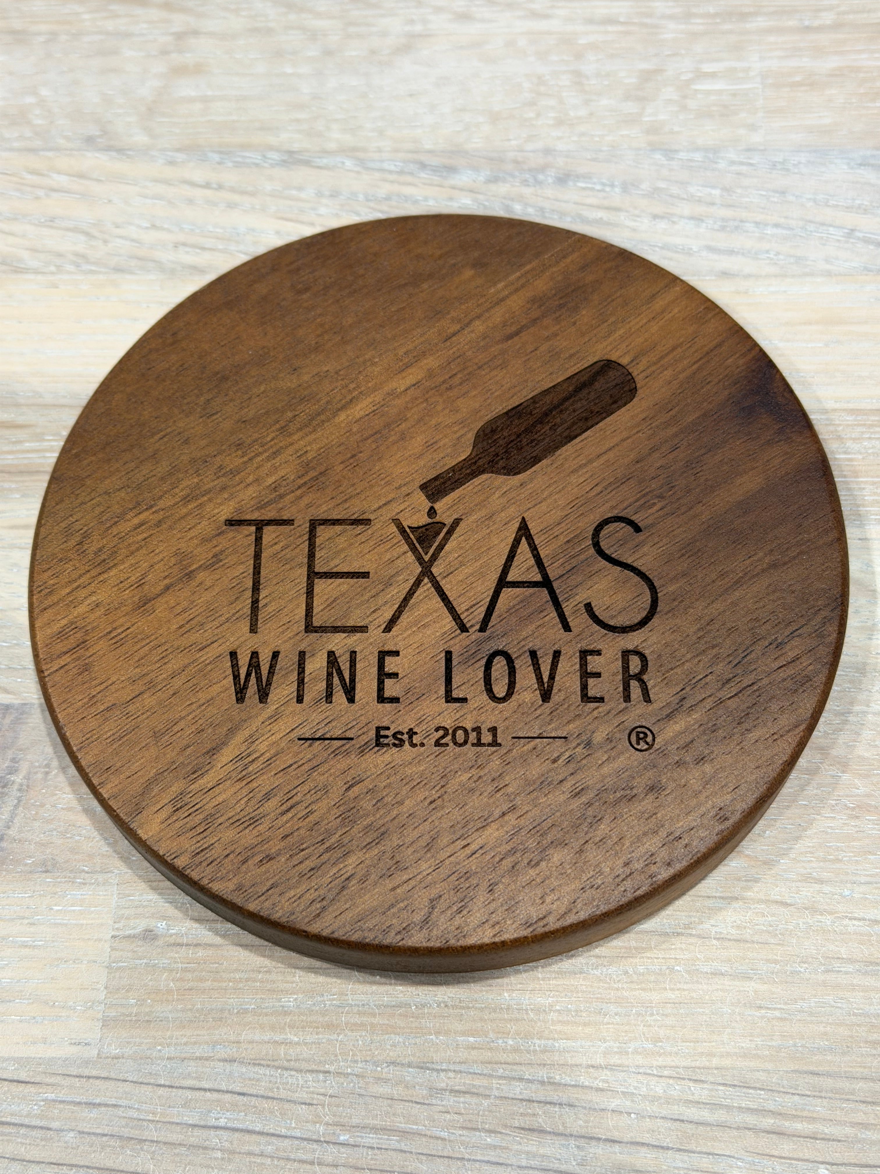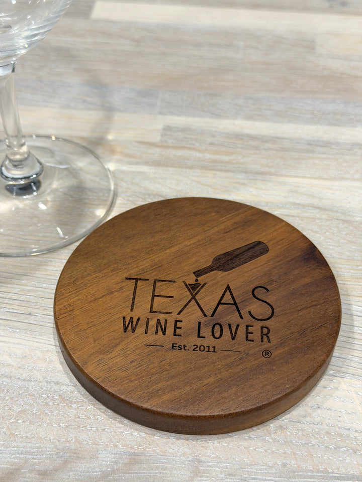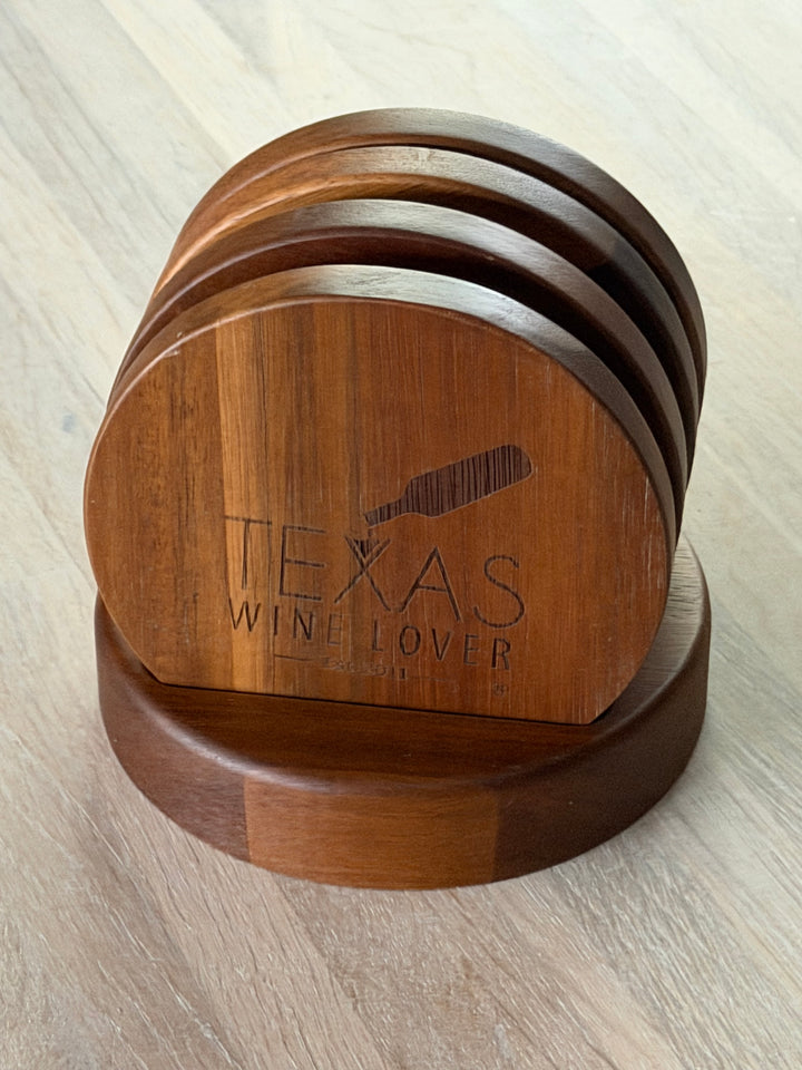 Acacia Wood Coasters Set with Round Stand - Texas Wine Lover