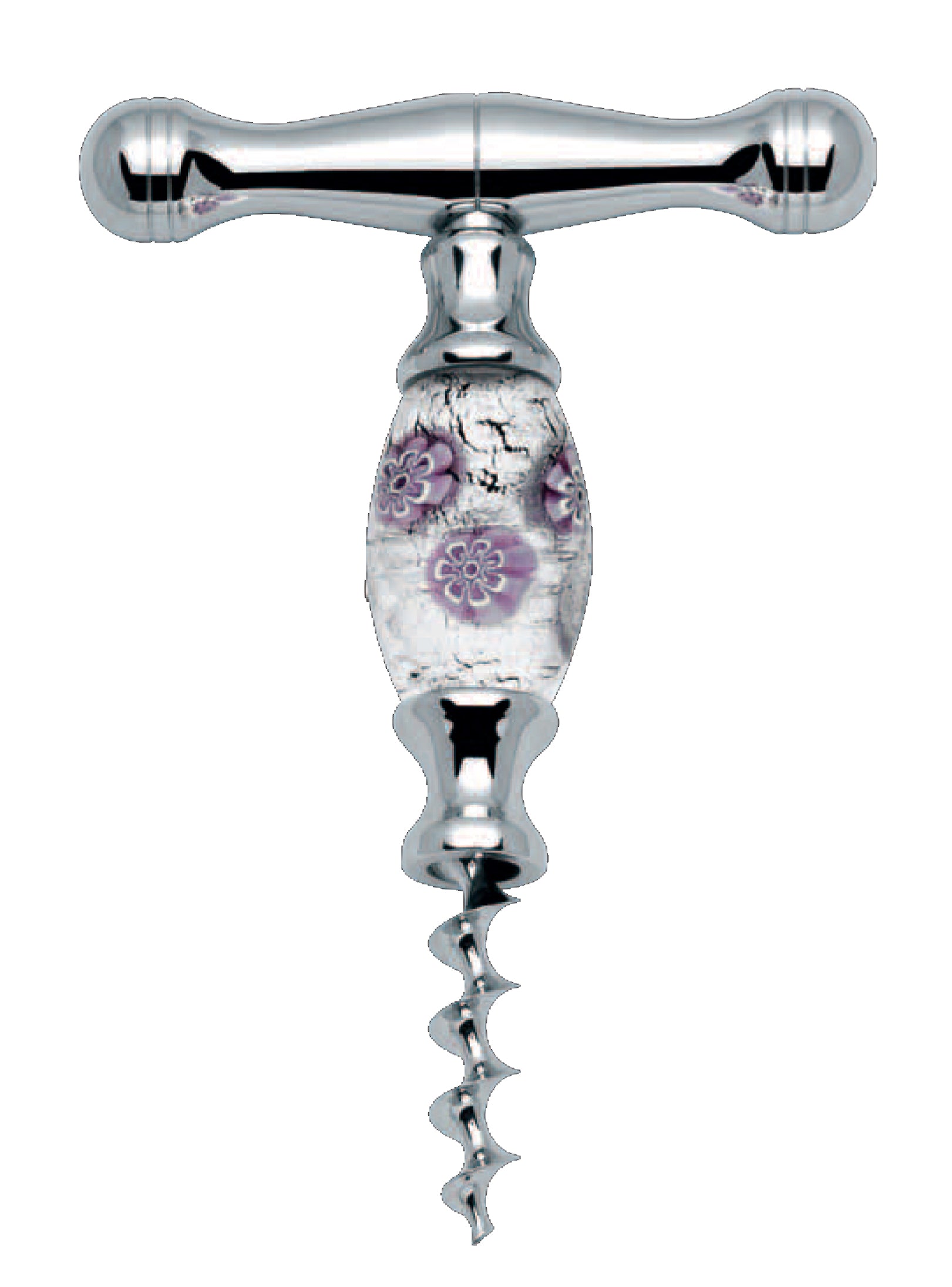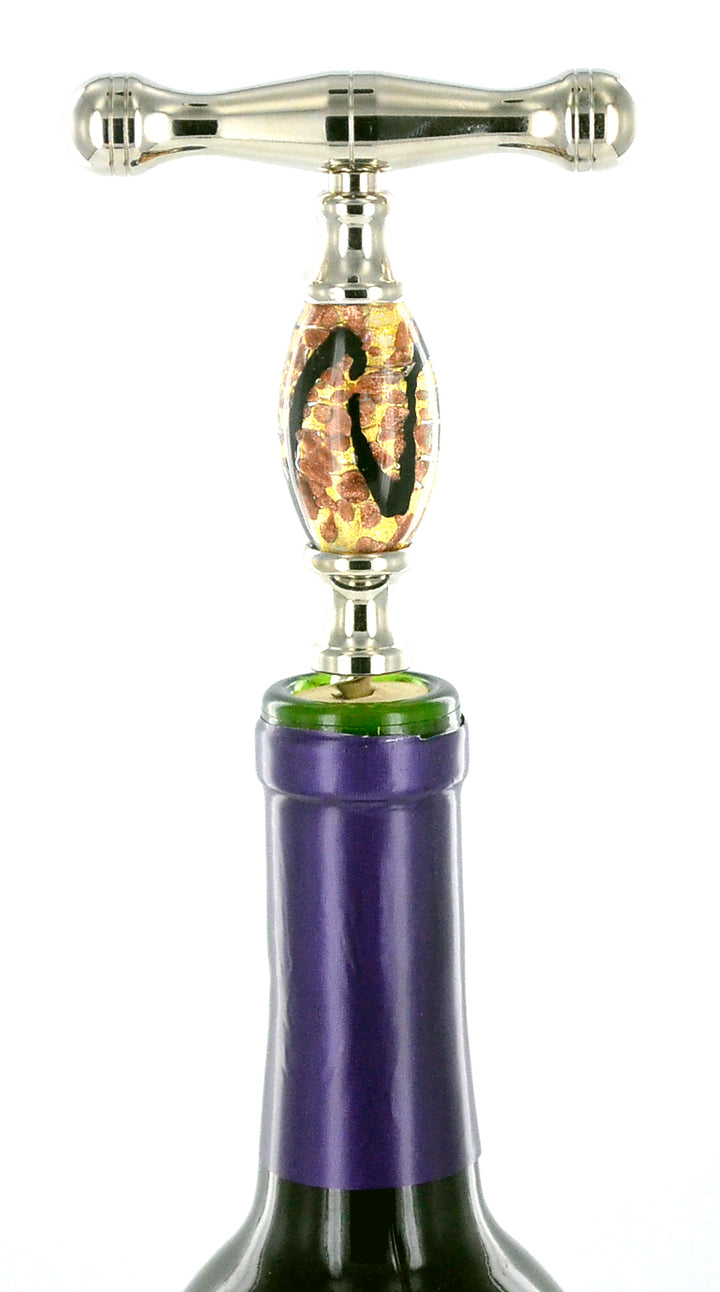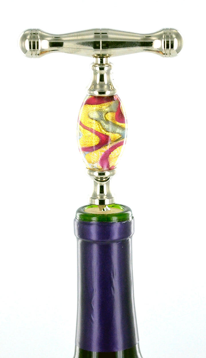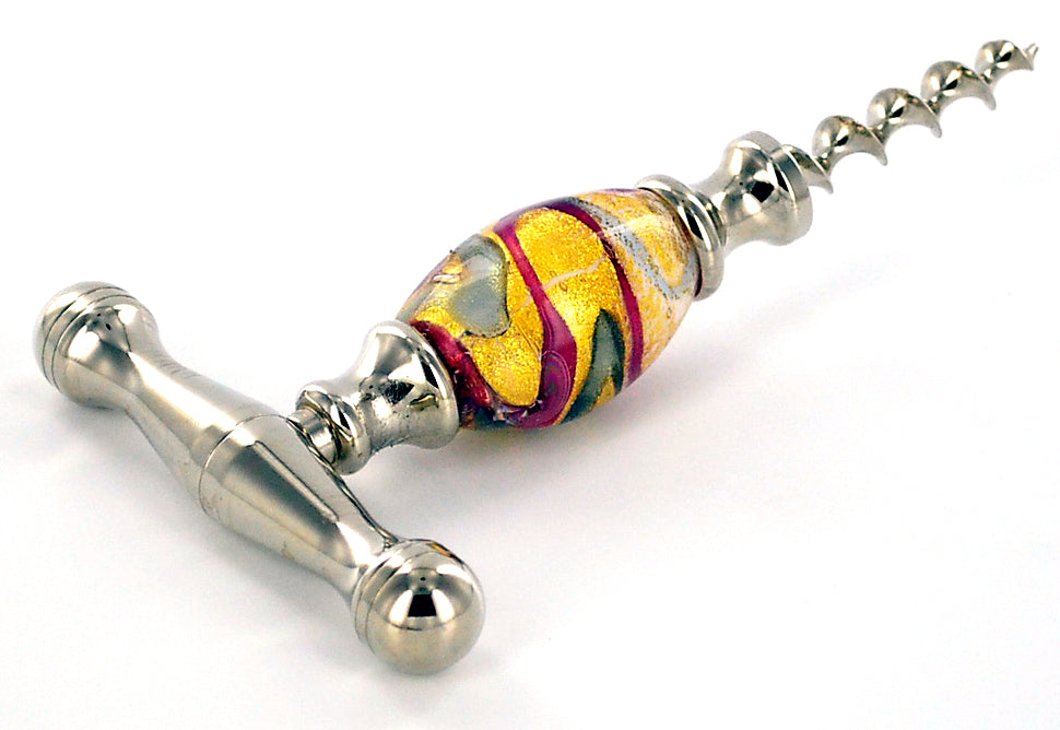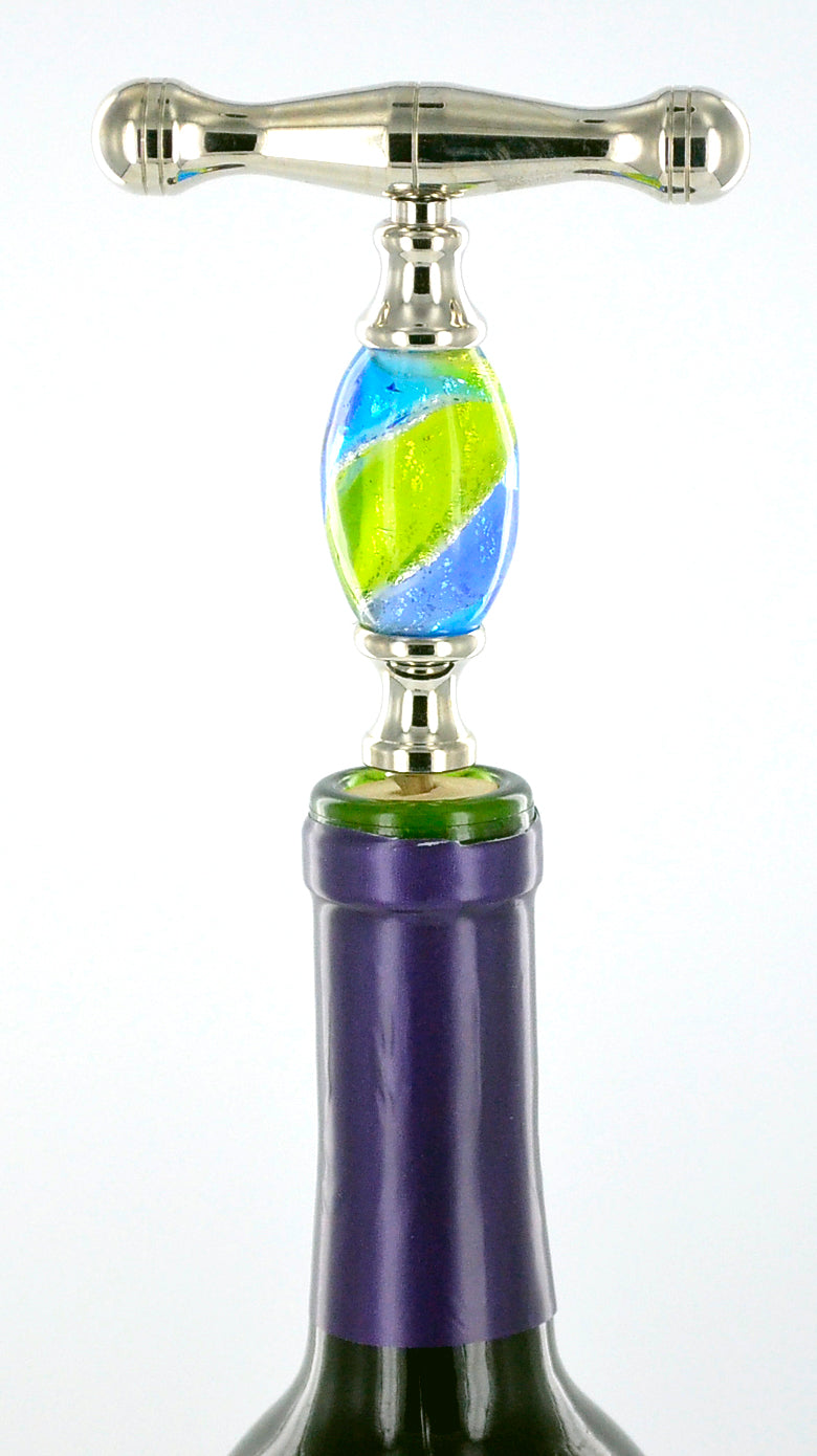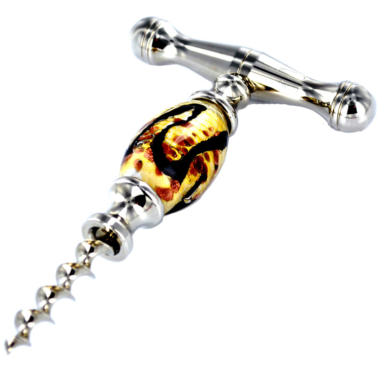 Crafted from exquisite Murano glass, captures the light with its vibrant colors and intricate patterns, showcasing the centuries-old glassmaking techniques of Venice. In addition to its unique beauty, the straight pull design ensures effortless cork extraction while the steel helicoidal spiral penetrates corks smoothly and securely.