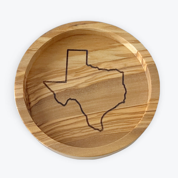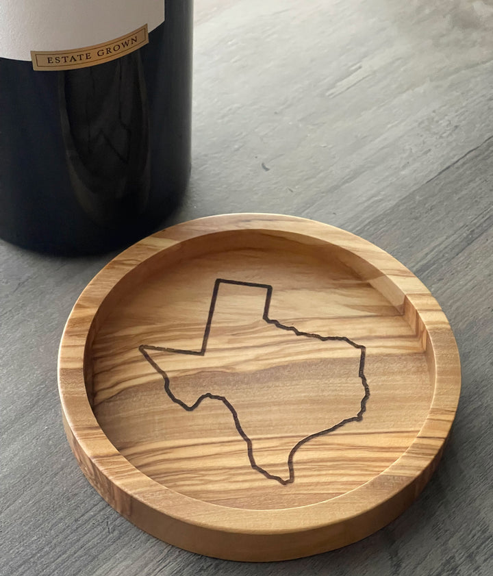 Olive Wood Bottle Coaster - Texas State Map Outline