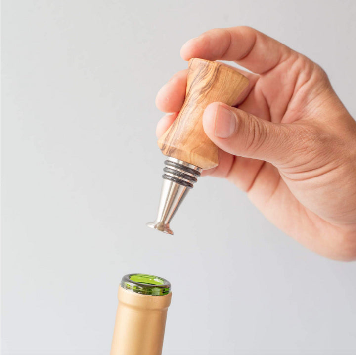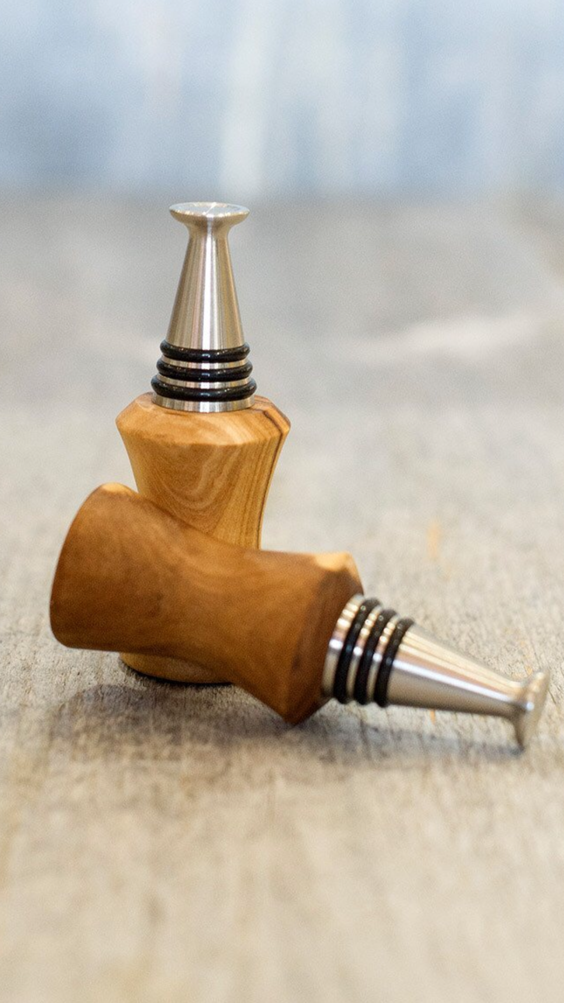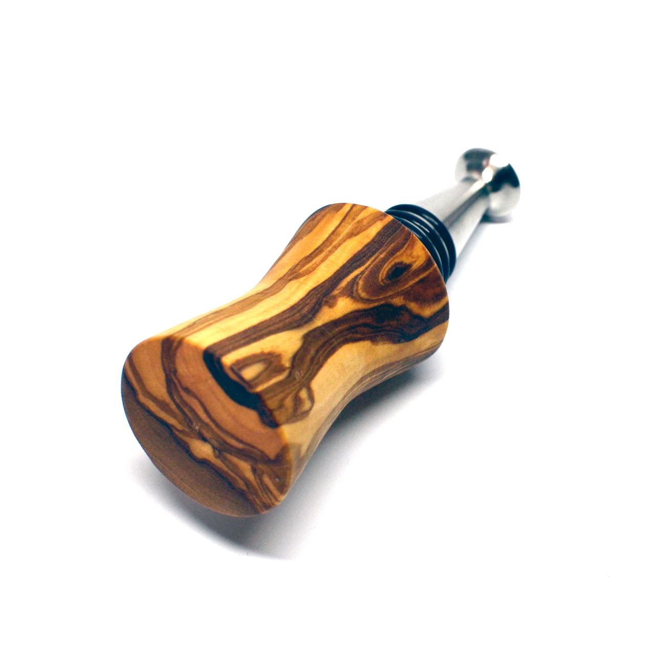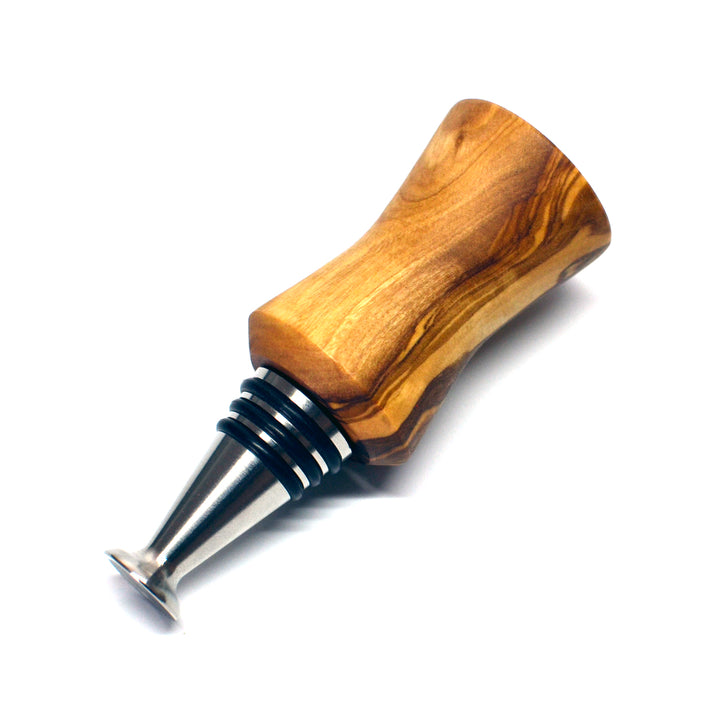 Beautifully turned olive wood wine bottle stopper, classically shaped. Made from 100% sustainable olive wood. Food grade and anti-microbial. Each one is truly unique as nature intended. Hand crafted in the USA.