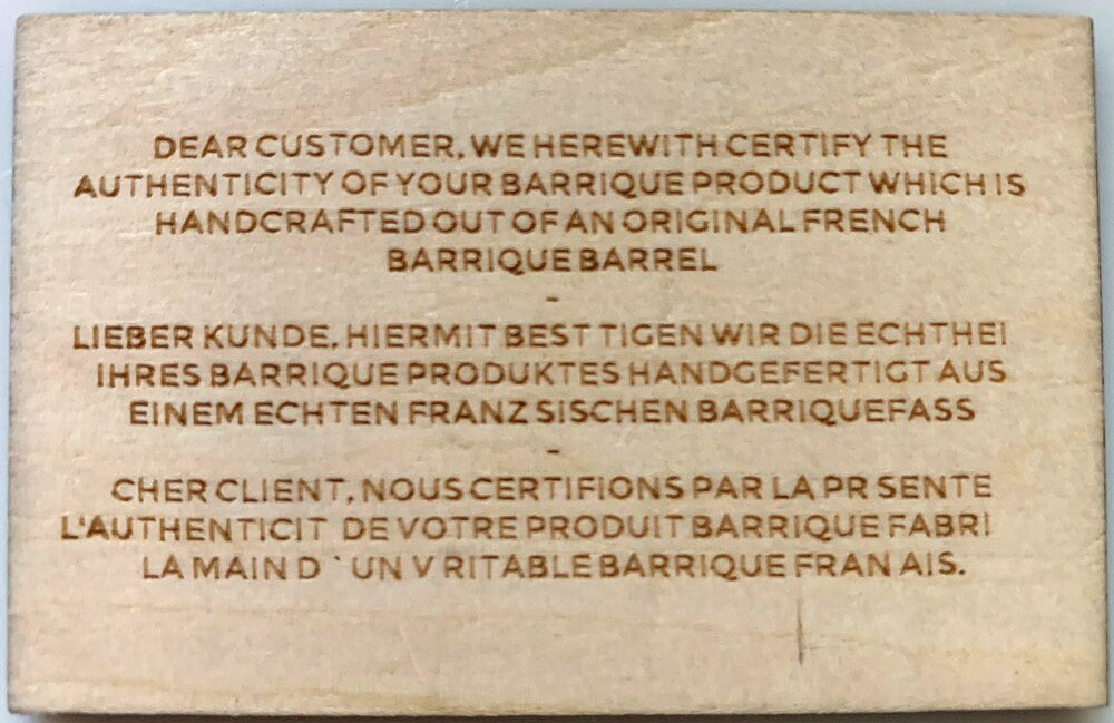 - Hand crafted out of French Oak Wine Barrel