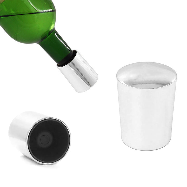 Modern Metal Wine Stopper - Made especially to snuggly fit the neck of wine bottle, the metal stopper has a mirror polished finish that enhances the elegant form while providing great functionality. The silicone interior creates an airtight seal that preserves the wines bouquet. This extends the wine’s shelf life, allowing you to store an opened bottle. If you refrigerate the wine, it will last even longer! Easy to use, simply push down firmly to secure the stopper.