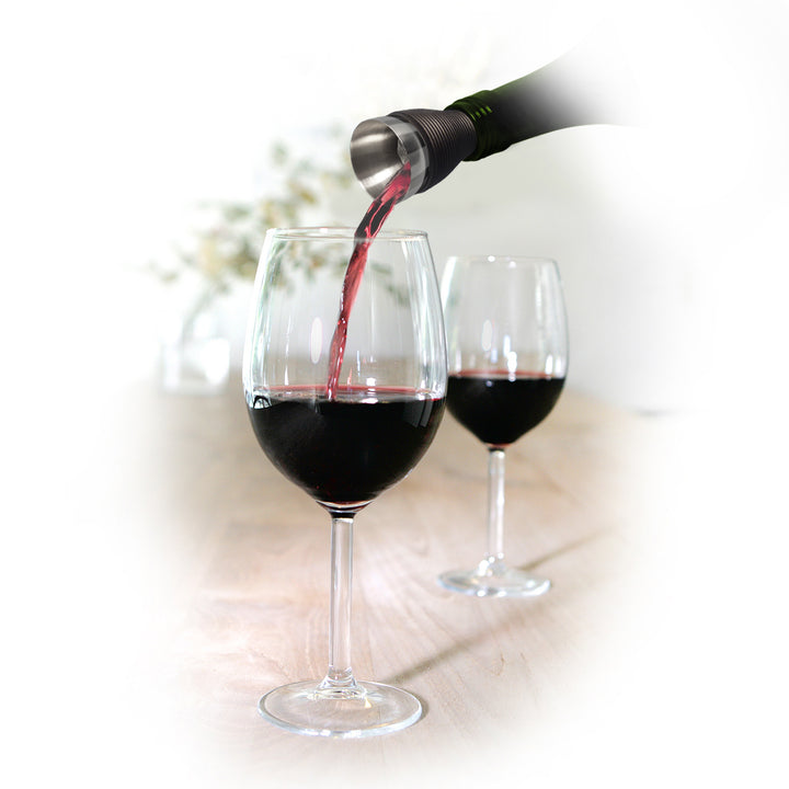 Vinaer Classic 5 Function (5 -in-1) Wine Aerator decants and aerates wine instantly as you pour. Simple to use and ensures optimal performance. The air mixing chamber instantly aerates the wine while pouring, significantly improving the taste, flavor and finish. Seven built-in dual-functional tubes are supported by eight small vents positioned at the grid edge. The built-in micro fine stainless steel filter protects against cork residue and other impurities. A non-drip stainless steel collar ensures no precious wine is ever spilled.