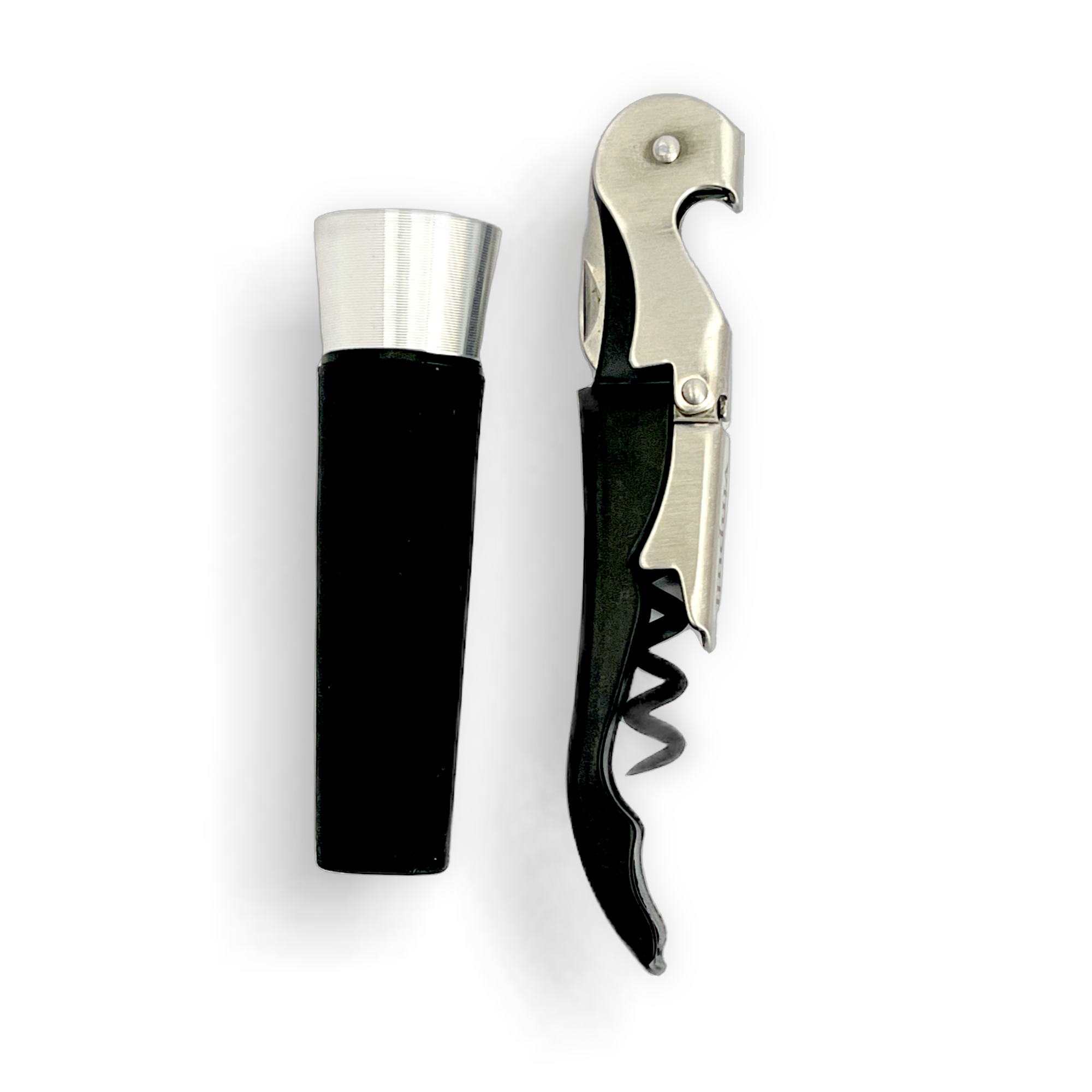 Uncorking is effortless thanks to the tried and tested double-hinged design and non-stick worm of the Vinpull Double-Hinged Corkscrew. Comes in stainless steel, complete with an integrated bottle opener, serrated foil cutter and non-stick coated five turn spiral.
